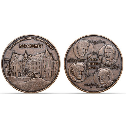2022. évi Bács-Kiskun megye, Kecskemét színesfém emlékérme patinázott BU